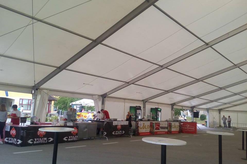 U suradnji s partnerom Hotelom Podravina iz Koprivnice nudimo vam najam šatora veličine 800m², 600m² i 300m², kao i svu tehničku opremu za organizaciju i realizaciju svih vrsta događanja, te bogatu ponudu jela i pića ( catering ). Usto u mogućnosti smo organizirati pripremu raznih jela na samom događanju za više tisuća posjetitelja. Vol, janjac ili odojak na ražnju, ribe na rašljama, fiš paprikaš, vojnički grah, paprikaš, gulaš i čobanac uz kvalitetan roštilj mogu vašoj manifestaciji dati novu i privlačnu ugostiteljsku dimenziju.